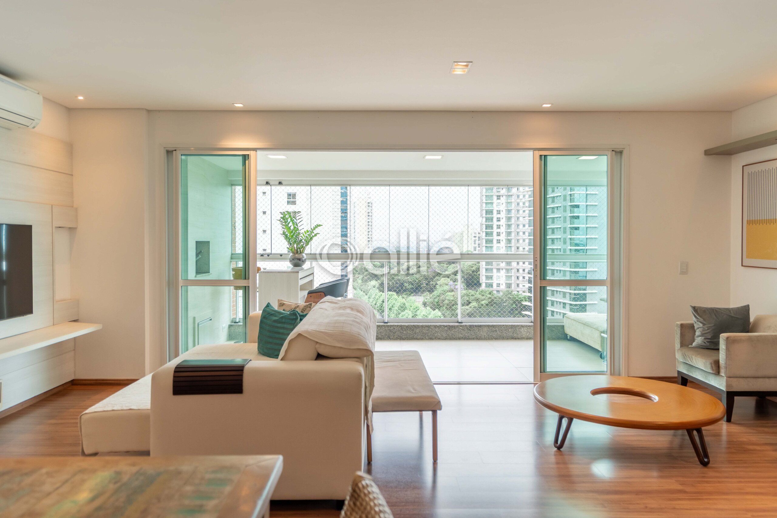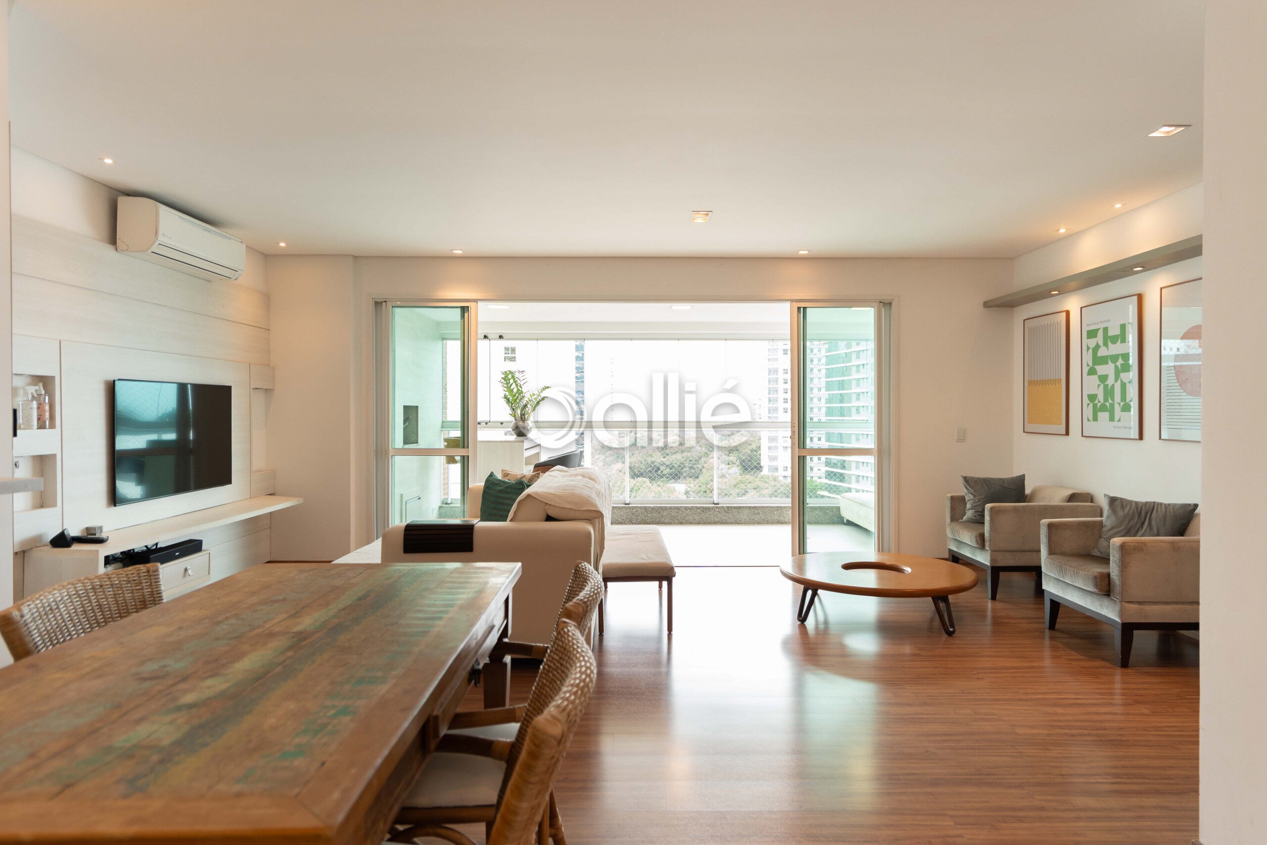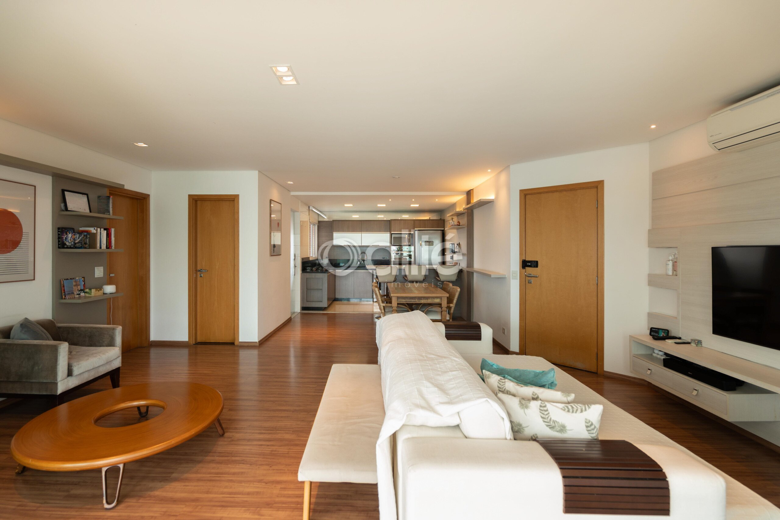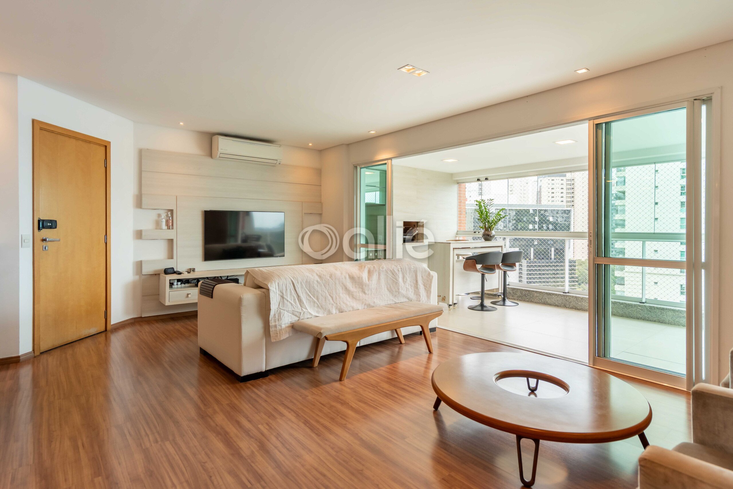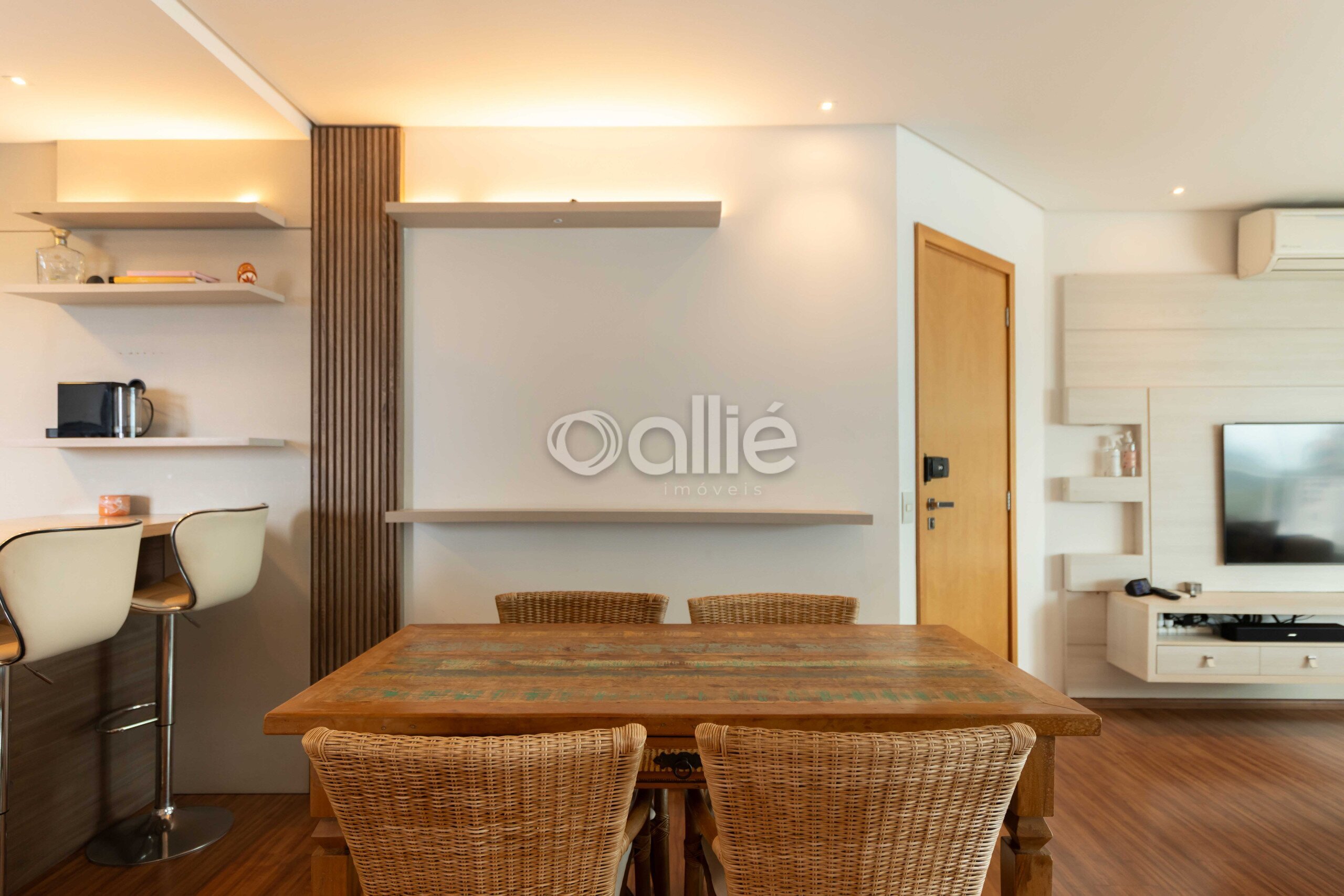 - Sala para dois ambientes, integrada á sacada com churrasqueira