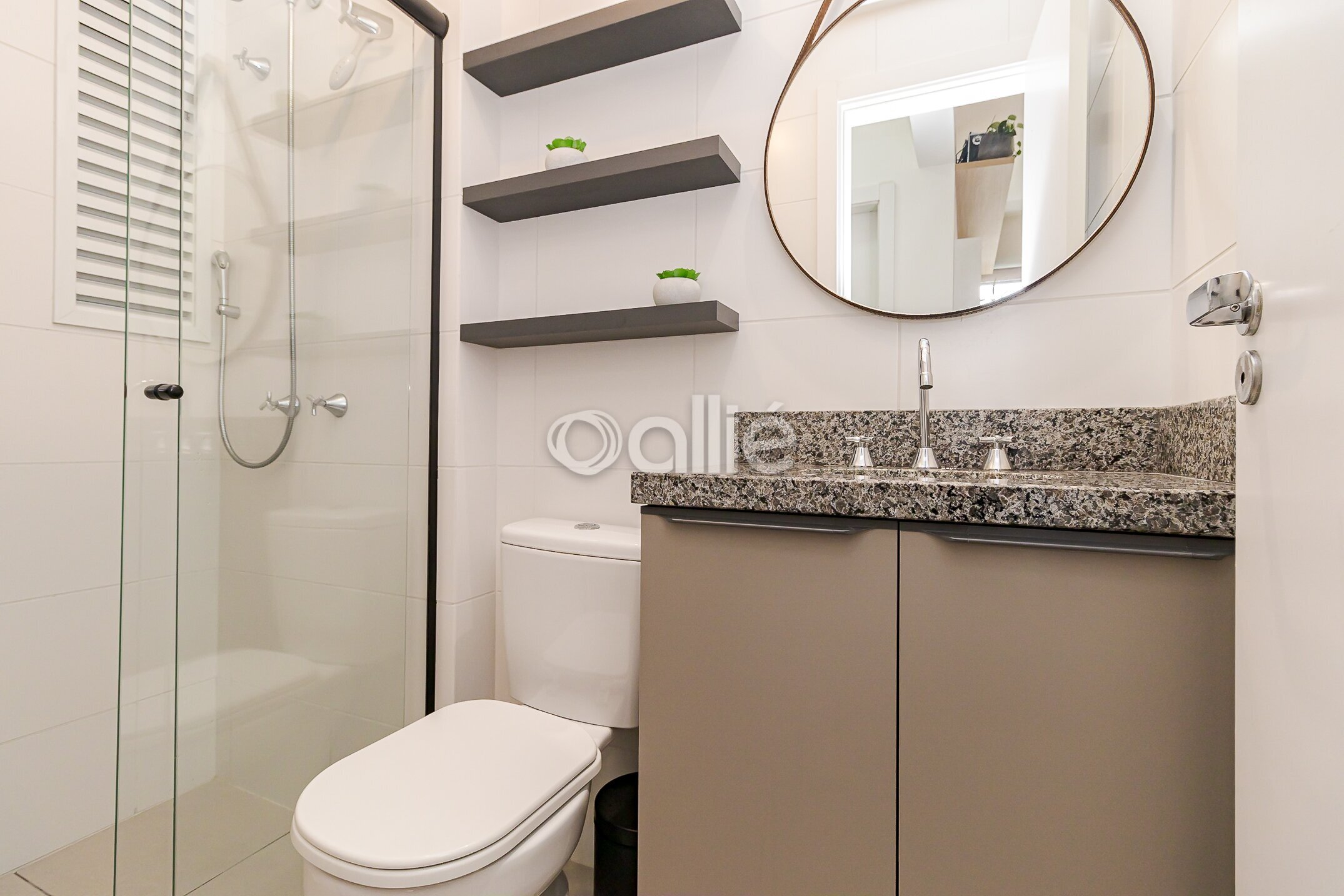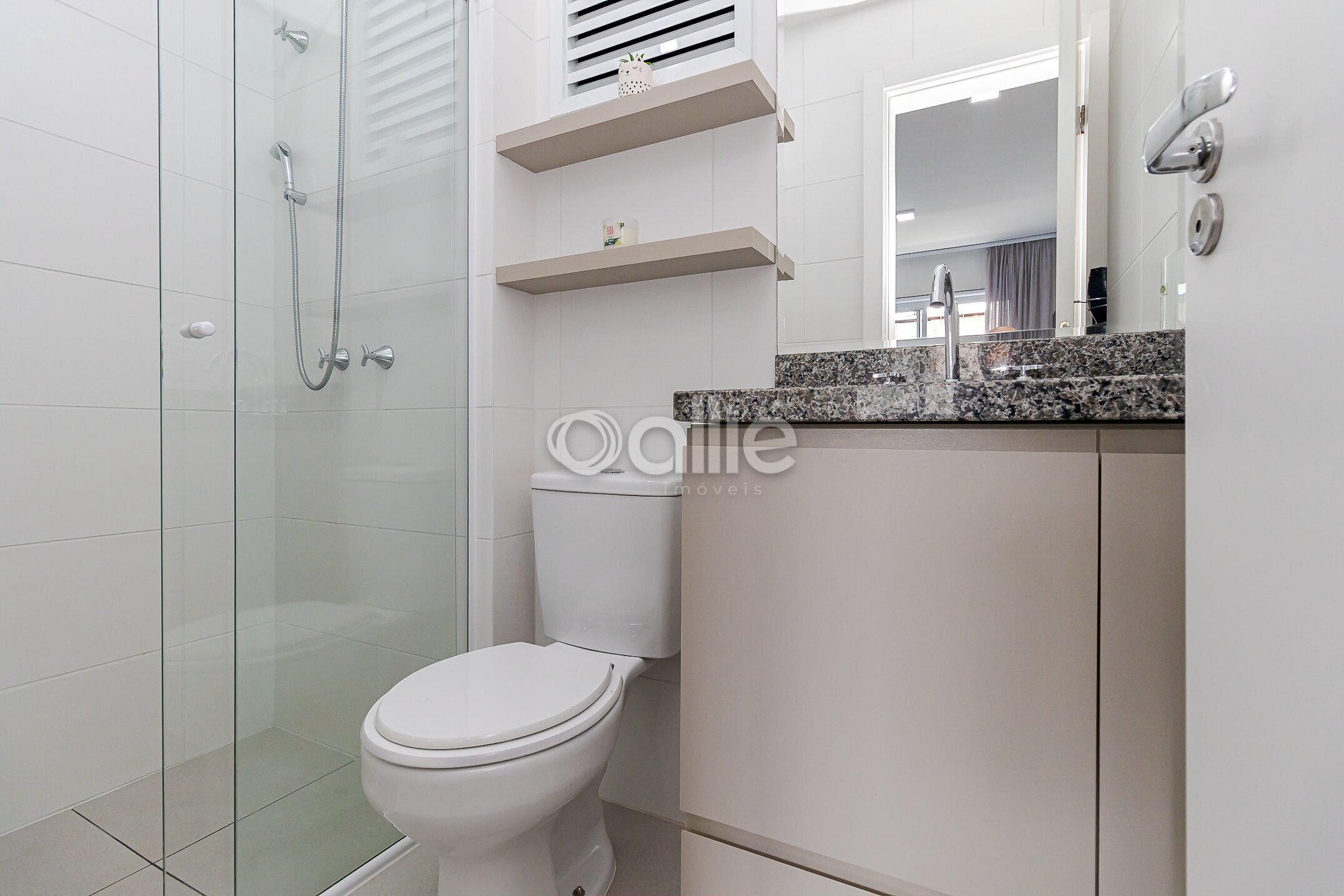São 2 banheiros, 1 na suite e outro social, os dois com box e armarios planejados.